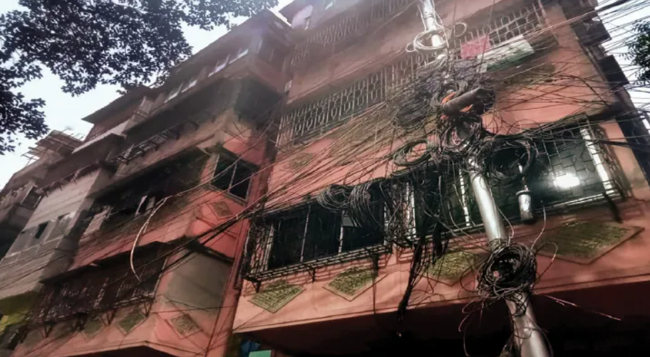 উত্তর কলকাতার মদনমোহনতলা স্ট্রিটে বিপজ্জনকভাবে ঝুলছে তারের জটলা, চরম আতঙ্কিত এলাকাবাসী