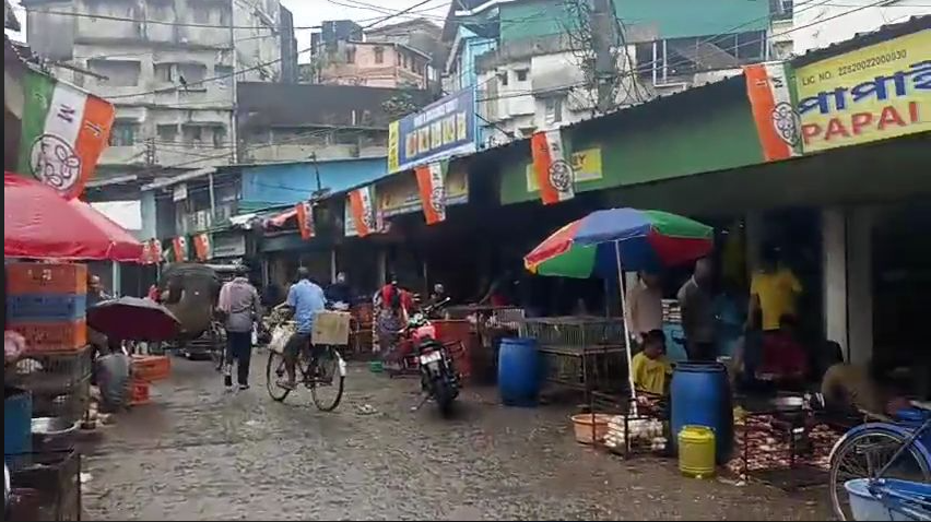 শিলিগুড়ি : ভোট সামনে আবার অন্য দিকে বর্ষা তবে বিধান মার্কেটের মুরগিহাটিতে রাজনৈতিক দলগুলি ইতিমধ্যেই তাদের অধিপত্য বিস্তার করা শুরু করে দিয়েছে। অবশ্য তাদের মধ্যে সবার প্রথমে আছে তৃণমূল কংগ্রেস । রাজ্যের শাসক দল, প্রায় ৯০ ভাগ পতাকা তাদেরই লাগানো। এমনকি গোটা বিধান মার্কেট জুড়ে রাজ্যের শাসক দল তৃণমূল কংগ্রেসের পতাকা লাগানো রয়েছে । এদিকে দোকানদাররা অবশ্য নিজেদের গায়ে কোনোরকম রাজনৈতিক তকমা দিতে নারাজ। তারা জানিয়েছেন লাগাতে এসেছিল, সবাই নিজেদের লোক তাই আপত্তি করিনি। এর সাথে আমাদের গায়ে রাজনৈতিক রং লাগানোর কোন ভূমিকা নেই।