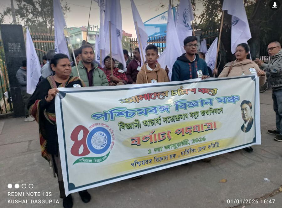 পশ্চিমবঙ্গ বিজ্ঞান মঞ্চের পক্ষ থেকে বিজ্ঞানী সত্যেন্দ্রনাথ বসুর ১৩৩ তম জন্মদিন উপলক্ষে শিলিগুড়িতে অনুষ্ঠিত হলো এক সচেতনতা যাত্রা